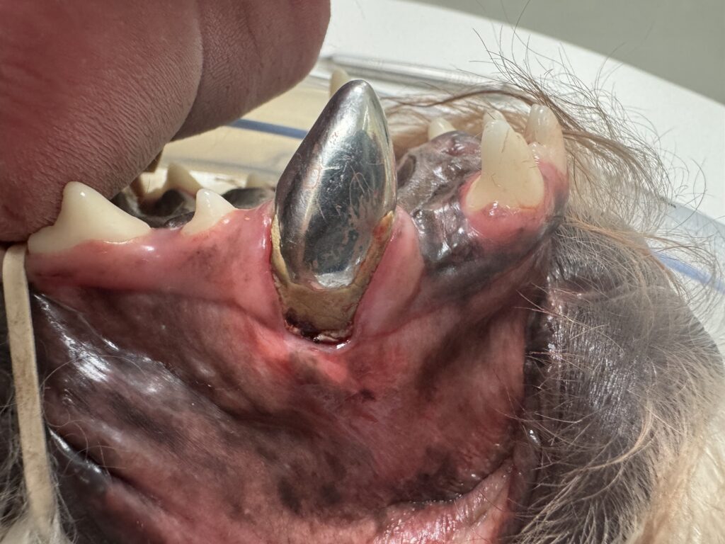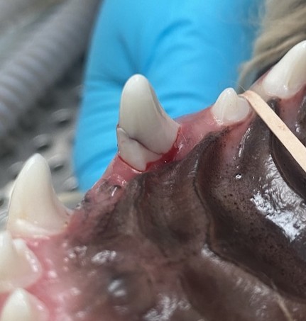 A 6.5-month-old standard poodle was presented to VDS for a fracture of the maxillary left canine (204). (Figures 1a-1c)